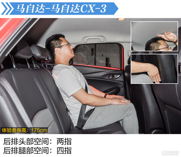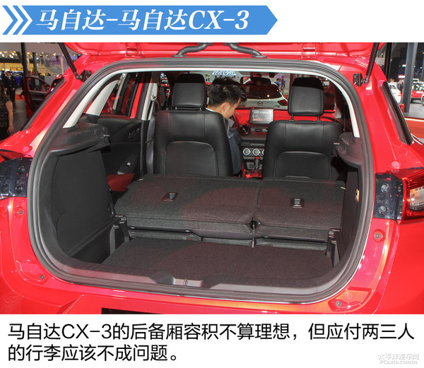 车系评价:从感受的具体情况而言,CX-3室内空间也的确仅仅足够的情况,若后排座旅客较为魁伟得话,想来使他远途乘座得话,会较为不舒服的。储备厢室内空间亦一样大道理,不出色,远行得话可以应对两三个人的行李箱。