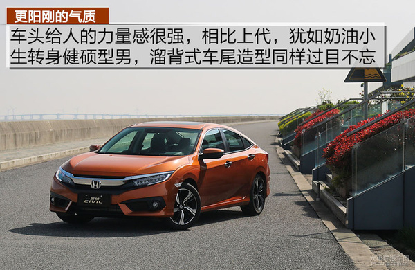 对比前代本田思域,这代车系的造型设计设计风格则更刚健气正一些,尤其是车前,给人的运动感很强,宛如奶油小生回身健壮潮男,更加容易讨得铁血真汉子的欢喜。此外溜背式的后尾设计方案也是这代车系的一大特性,个性化十足,尽管不一定让任何人一见倾心,但肯定过目难忘。