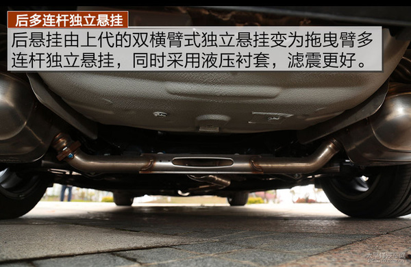 全新思域选用了前麦弗逊后多连杆独立悬架的组成,后悬架由前代的双横臂式独立悬架变成拖拽臂多连杆独立悬架,值得一提的是后悬架选用液压机软性轴套,针对地面的振动阻隔更强些。对于具体动态性主要表现怎样,安全驾驶一部分再详说。