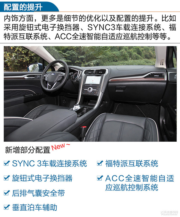 乔治脸的蒙迪欧也陆续发布了混合动力车型,而且在车里配备左右了一定的时间。它选用更奢华的车内饰用材、旋纽式电子器件换档器、第三代SYNC车截联接系统软件、福特派互连系统软件、ACC飞速智能化自动巡航操纵这些。此外,前座扶手箱及其换挡杆地区的置物格进一步提升,现代感再进一步。