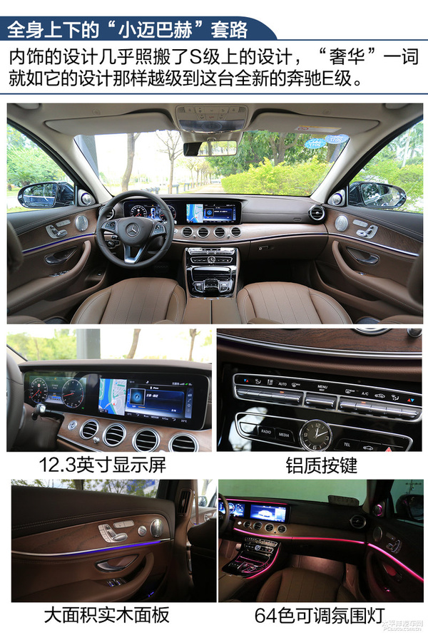前排的双12.3英寸高清显示屏无疑是最引人注目的,而在使用实木方面,奔驰可以说是专家了,大面积的实木让奔驰E级在体现豪华的层面上更加淋漓尽致。全新奔驰E级首次搭载许多新科技,但安全配置一直是奔驰车型照顾的重点。