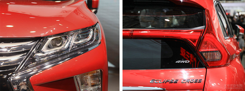 前脸部,奕歌选用了三菱全新“Dynamic Shield”设计语言,双条幅不锈钢进气口配上“X”造型设计,总体提高视觉冲击;前杠两边含有大规模不锈钢饰条装饰设计,底端格珊选用全线贯通式设计方案,另外两边装有前雾灯及方向灯。