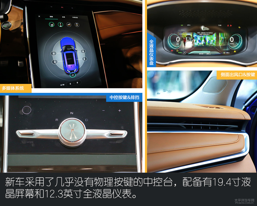 车内饰层面,新汽车选用了基本上沒有物理学功能键的仪表台,配置有19.5寸液晶显示屏和12.3英寸全液晶显示屏仪表盘,也让其现代感十足。MARVEL X的坐椅以浅咖啡色主导,前后排坐椅选用不一样设计风格,前座健身运动坐椅的菱角装饰极具速度感,为电瓶车的安全驾驶增加驱动力颜色。