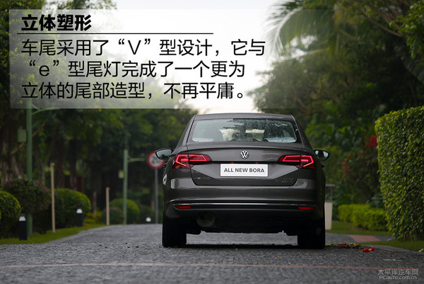 后尾层面,全新宝来选用了“V”型设计方案,层次感很强,而辨识度最大的還是“e”型后尾灯,照亮以后的视觉冲击也是棒棒哒的,这般“繁杂”的尾端设计方案毫无疑问也提高了宝来的热情,平凡的大家一下子也拥有热情。