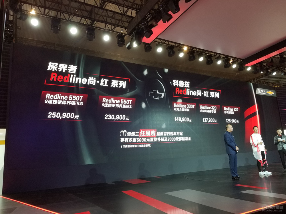 【尊流汽车网 新车频道】在2018成都车展上,雪佛兰品牌旗下Redline系列(中文命名为尚•红系列)正式上市,其中包括旗下探界者Redline 尚•红版(售价区间为23.09-25.09万元)和科鲁兹Redline 尚•红版(售价区间为12.59-14.99万元)。