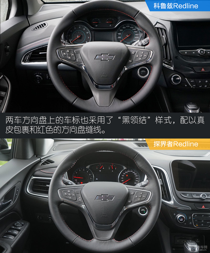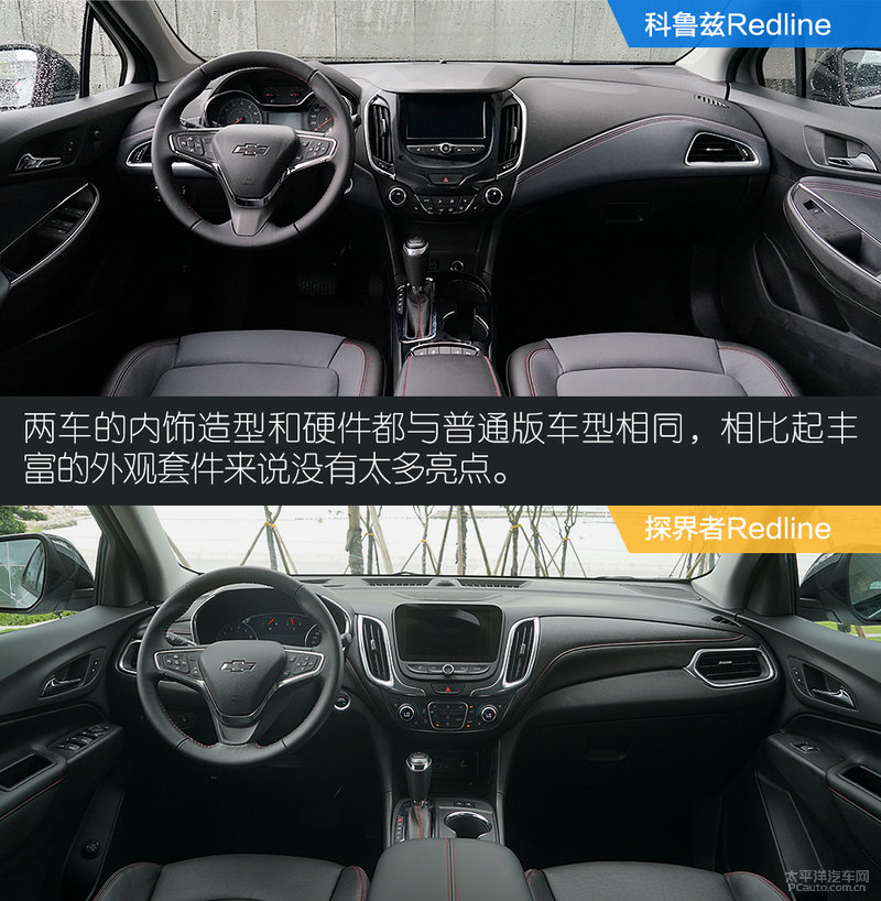 两车的内饰因为Redline本身就是红线的意思,所以除了改用红色的缝线和“黑领结”标之外就没有其他变化了,实在有点坑爹。