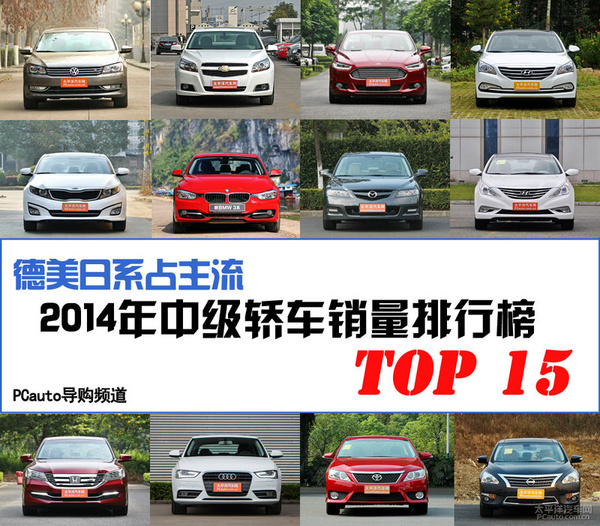 | 2014年中级(B级)轿车销量TOP 15一览 | ||||||