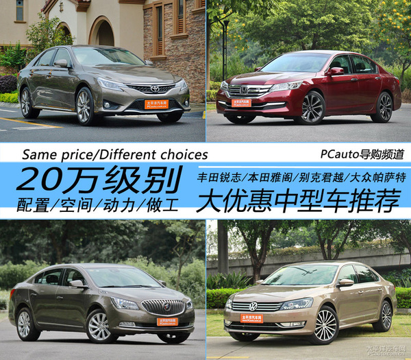 符合条件的都有什么好车型推荐?小编在中型车里溜达了一圈,还真发现不少可以推荐的车型,比如丰田锐志,适合风华正茂的年轻族群;还有本田雅阁、大众帕萨特以及别克君越,无论是家用还是商务都很靠谱。这四款车的降价幅度均超过了2万元,最高的甚至达到4万元,终端价格很是给力。