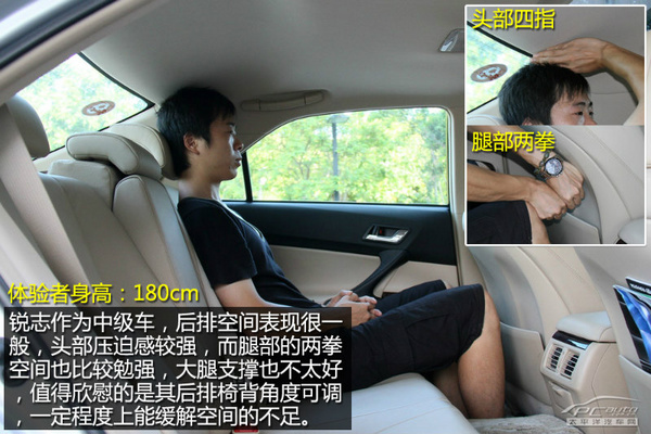 世间万物都是相对的,锐志后驱带来的操控优势相当明显,而其弊端也是因为前置后驱的设计,尽管锐志还算作5座车型,但因为传动轴造成后排中央地台太高,坐一个成年人是很不舒服的。而2850mm的超长轴距也并没有带来更大的乘坐空间,因为运动车型必须要更多考虑车身比例、外形设计等因素,所以后排乘坐空间表现比较一般,这也是多数人拒绝锐志的原因。