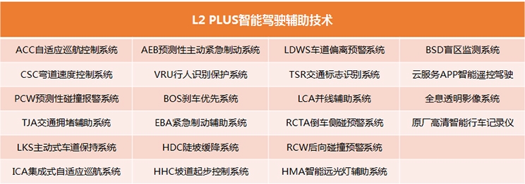 从曝光的配置表上看,宋Pro除了搭载L2级智能驾驶技术常规的自适应巡航系统、车道保持系统、车道偏离预警系统、盲区监测系统外,还有像TJA交通拥堵辅助系统、TSR交通标志识别系统和VRU行人识别保护系统这些亮点装备。这些驾驶辅助配置能让宋Pro实现自动跟车、车道保持、主动刹车以及交通标志识别等功能。