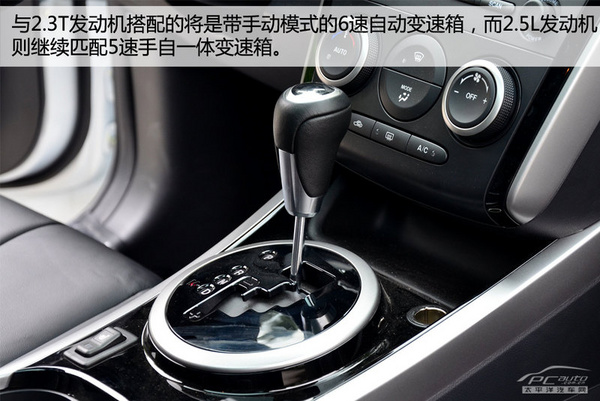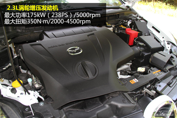 一汽马自达CX-7除了原有的2.5L发动机外,还增加了一款MZR 2.3L涡轮增压直喷发动机。这台发动机由马自达运动部门Mazda Speed打造,曾经也是运用于 Mazda6 MPS等高性能车型上。其在2000转以上便能爆发350N·m的最大的扭矩,而将转速拉至5000转,最大175kw(235ps)的马力也将劲情展现,日常使用动力充沛。