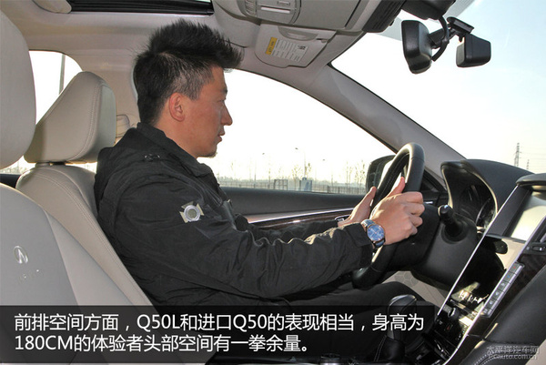 英菲尼迪Q50L的长度与轴距相比Q50分别增加了50mm和48mm,这些数据最直接的体现是在乘坐空间上,180cm的乘客无论前后排都可以得到不错的空间余量。下面的实拍图条件有限,我们将在日后的测试和试驾文章中给大家带来更精细的空间对比。
