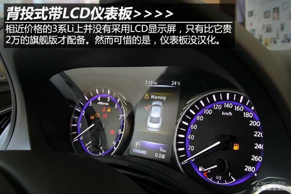 除此之外,Q50L的基本科技配置也有了,ESP(英菲尼迪称为VDC动态稳定控制系统)、发动机自启停都有了,仪表盘也足够大气清晰。