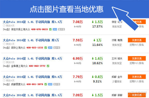 大众车型的热卖致使其鲜有优惠的情况,而POLO则不然,目前大部分地区均有1万元左右的优惠幅度,也就是说购车手册比较推荐的舒适型版本10来万元就可以拿到手,很值得考虑。