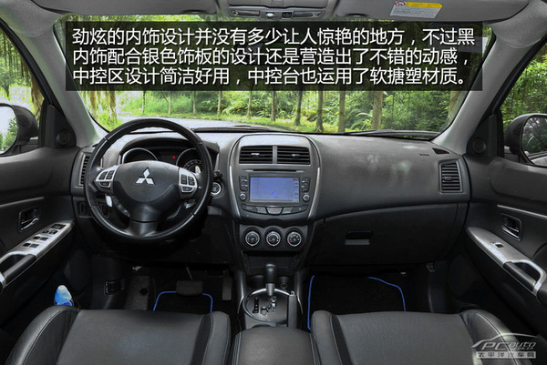 劲炫ASX的内饰整体设计偏向简洁实用,细节设计还是典型的三菱风格。全黑的配色,可带来具有非常强烈运动感氛围。中控台采用了两种不同的材质,上层较硬而下层要稍微软一些,手感细腻舒适。