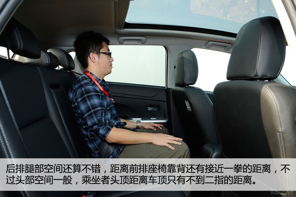劲炫ASX的轴距达到了2670mm,相比同级别SUV来说优势很明显,因此无论前后排都可以获得不错的腿部空间。而后排头部空间表现就有点差强人意,不过好在劲炫ASX采用全景天窗,所以乘客在车内并不会感觉过于压抑。