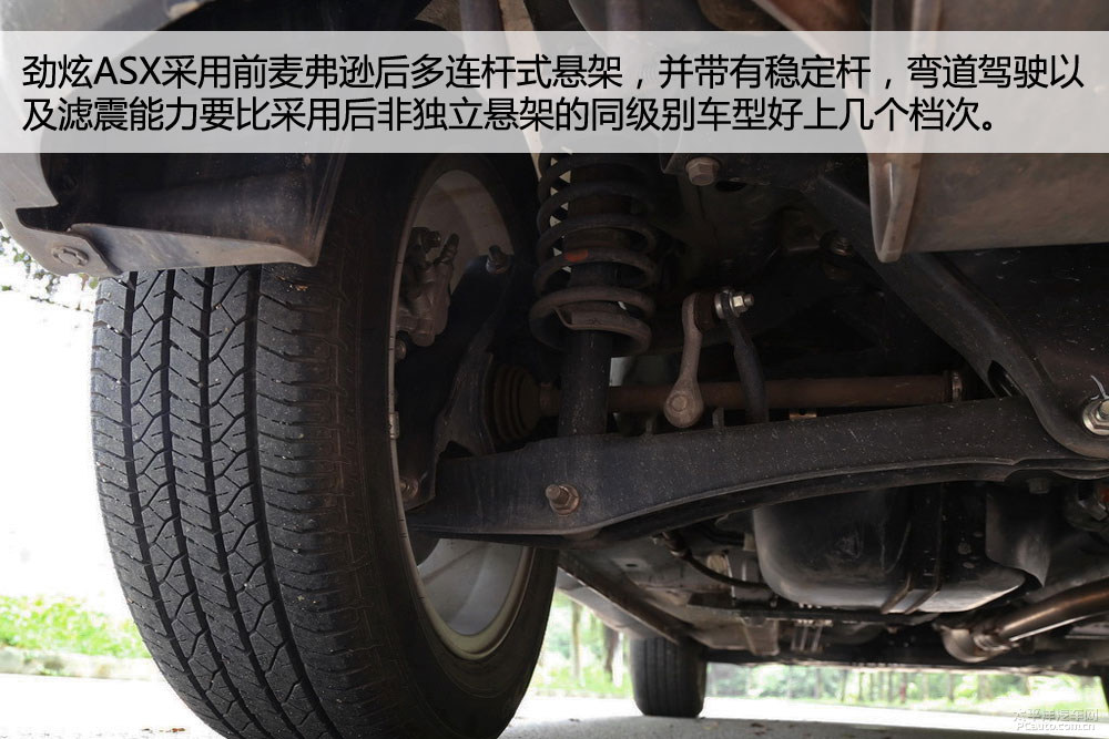 底盘方面,劲炫ASX采用前麦弗逊后多连杆式悬架,并带有稳定杆,相比同级车型绝大多数的后扭力梁非独立悬架,劲炫ASX弯道驾驶以及滤震能力要好上几个档次。