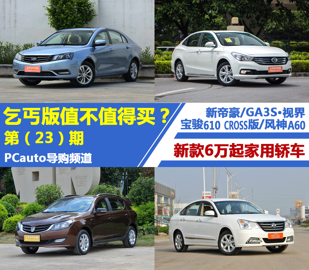 (二)新款6万起家用轿车:吉利新帝豪/传祺GA3S/宝骏610 CROSS/东风风神A60