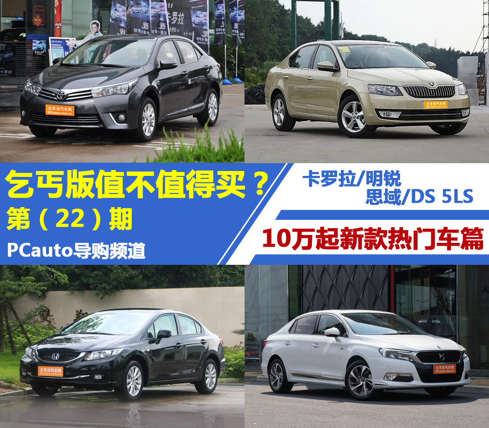 新一期《乞丐版值不值得买》又来了,这次为大家带来了热门全新家用车丰田卡罗拉、斯柯达明锐,以及小改款的本田思域,再加上另一款国产不久的精品车型DS 5LS,本期的四款车型可谓是看点十足,废话不多说,咱们往下看。点此进入文章