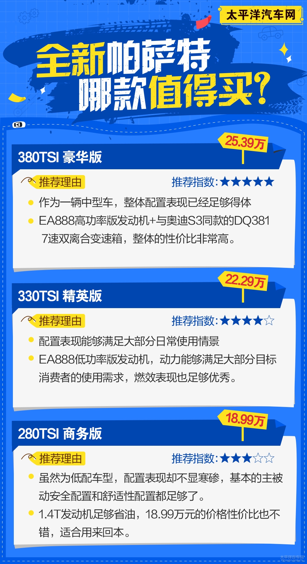 | 全新升级一代大众帕萨特 具体指导价目表 | |
