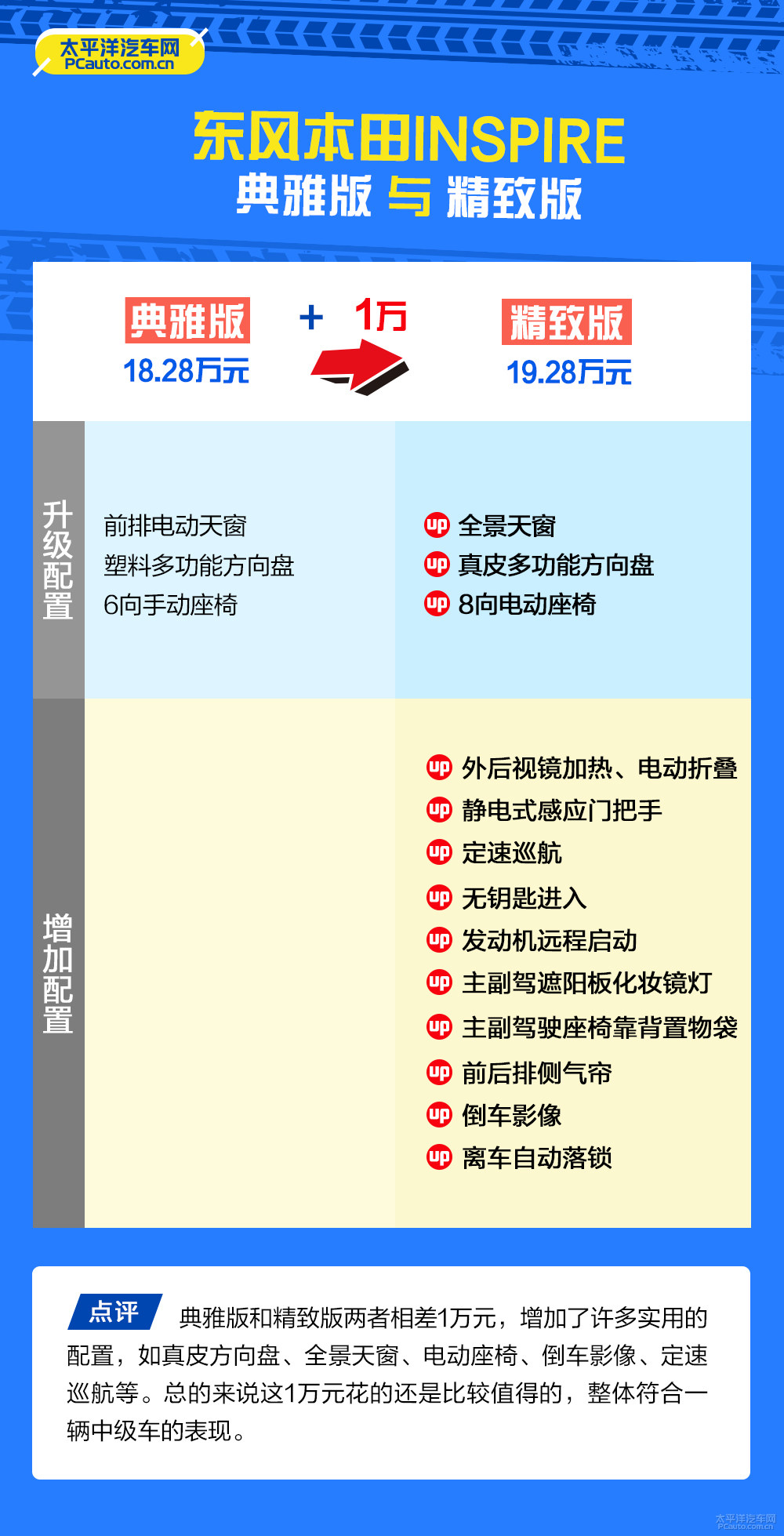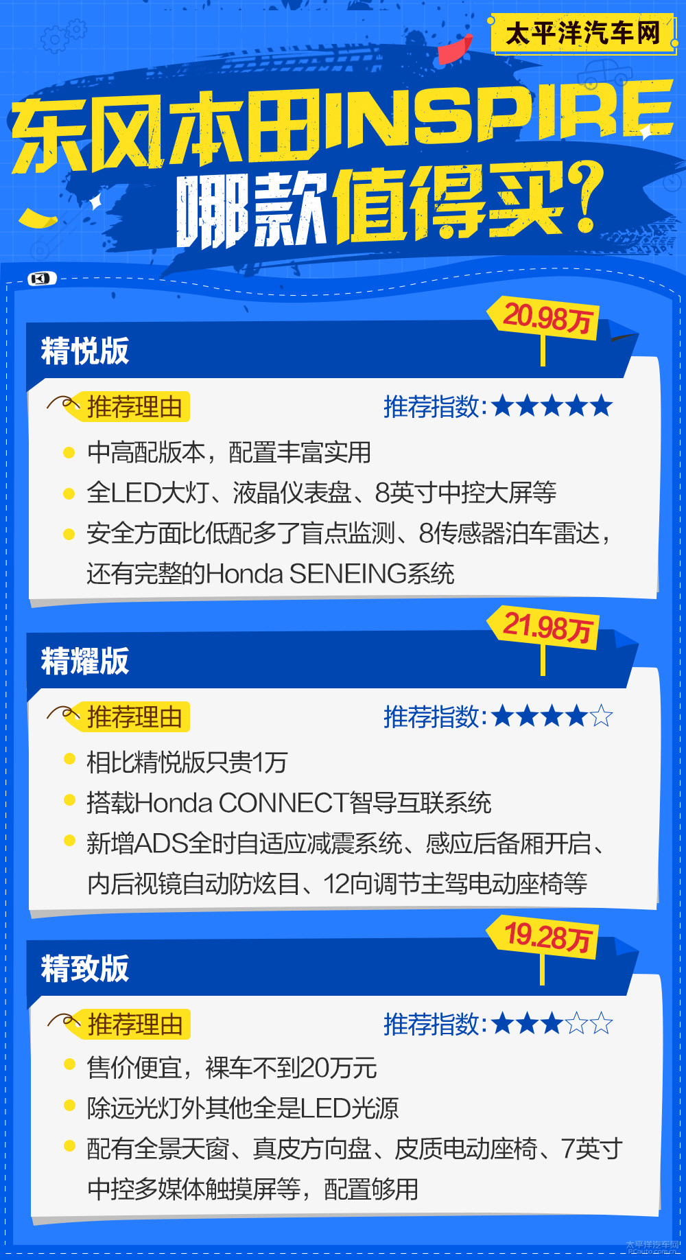 在前不久,大家早已感受已过全新升级东风本田汽车INSPIRE一般版车系的动态性主要表现,很感兴趣的盆友能够 点一下正下方图片链接浏览。