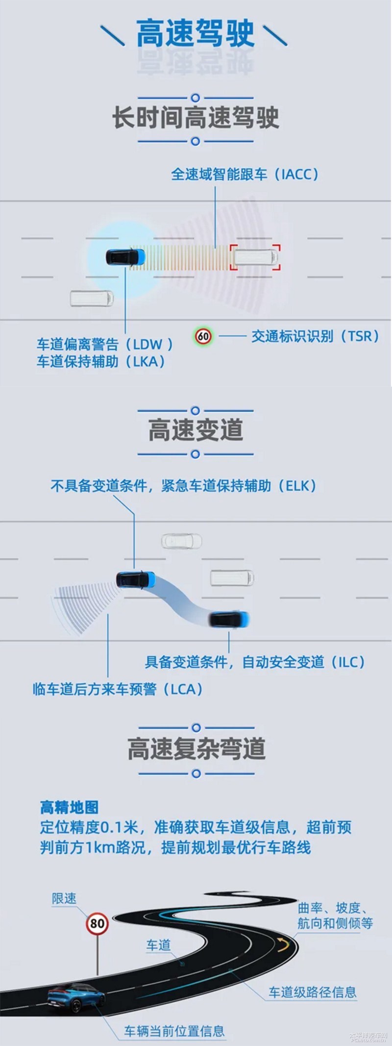 而在汽车行使中,该系统软件出示飞速域跟车(IACC)、行车道偏移警示(LDW)、车道保持輔助(LKA)、交通标志鉴别(TSR)作用。当必须变更车道时,如不具有变更车道标准,车子有着应急车道保持輔助(ELK)作用,具有变更车道标准时,车子可进行全自动变更车道(ILC),期内有临行车道后才来车预警信息(LCA)輔助。此外,归功于高精地图的配用,该系统软件能精度等级能高至10厘米,官方网声称能精确获得行车道级信息内容,可预测车子正前方1km的实时路况,提早整体规划最佳行驶路线。(文:尊流汽车网 杨黄泓)