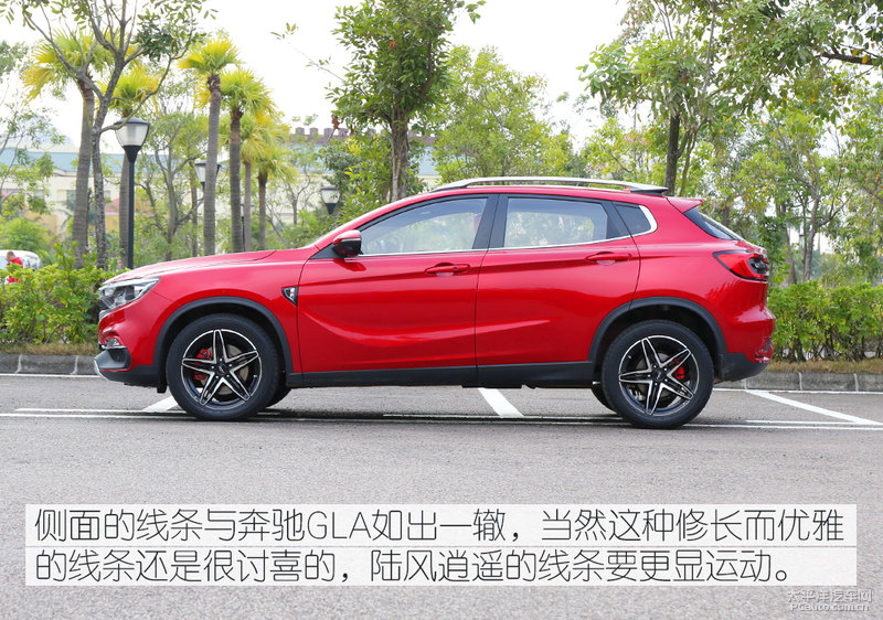 侧卧与尾端的造型设计则是效仿了奔驰GLA,时尚潮流干净利索的车体线框刻画出速度感,侧卧身材曲线的解决也别具一格。流水灯式后尾灯的设计方案辨识度很高,且层次感十足,配搭正中间的熏黑了解决,精美度并不低。
