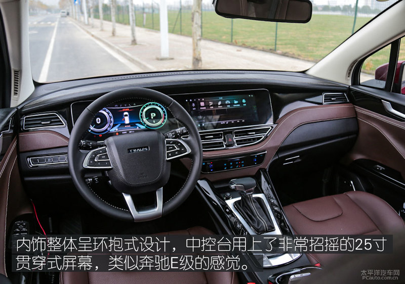 车内饰设计方案甚为空气,令人印像更为刻骨铭心的便是正中间那二块连接成一体的触摸显示器,加起來约有25寸,那样的设计方案最开始在一些德系豪华车品牌上见到。车内饰选用两色设计方案,仪表台质感十分强,大规模的灰黑色钢琴漆颜色也提高了全车质量感。空调控制器一部分也选用触摸式设计方案,互动页面更为简约。