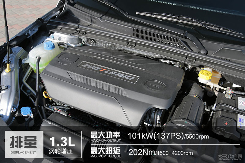 传祺汽车GA4出示了2款柴油发动机共四种汽车动力系统可选,1.5L自吸柴油发动机配对的是5CT/4aT,1.3T柴油发动机配对的是5CT/6AT。大家试架的200T车系配用了一台1.3T涡轮增压器柴油发动机,最大马力137PS,最大扭矩转速202Nm。