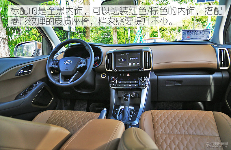 车内饰的设计方案一样以硬朗设计风格主导,竖直的线框刻画出清楚的中控台地区,中控台大屏幕与两边的矩形框通风口融为一体,配搭白色背景灯的车内仪表盘,高新科技气场浓厚。车内饰多选用硬材料,由此可见关键点的解决充足认真,因而车内饰不容易给人便宜感。黑棕双拼别墅车内饰更显奢华感,而黑白红双拼别墅则更激进派一些。