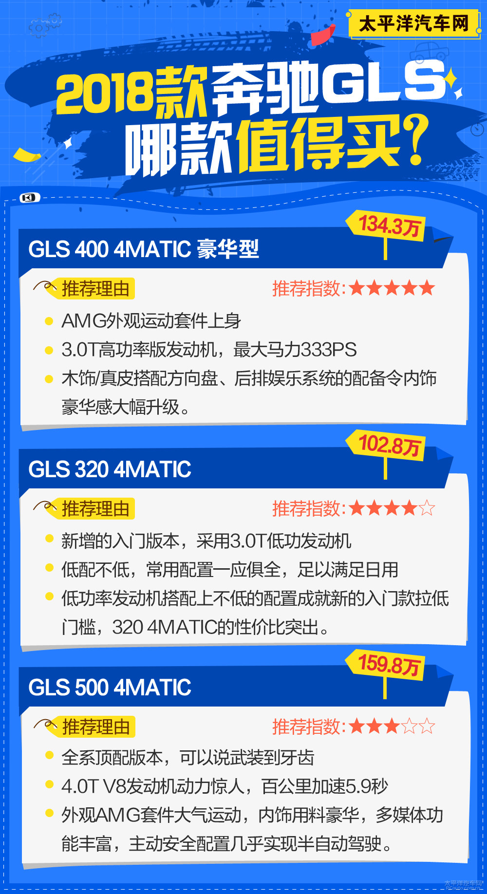 总结:现阶段新款奔驰GLS现有四种驱动力五款车系可选,不一样价格中间除开驱动力数据信息相距很大以外,饰品水准也是各有不同。那每一个价钱分档中间到底差了什么配备?是不是非常值得掏钱升級呢?使我们来一一做数据分析。