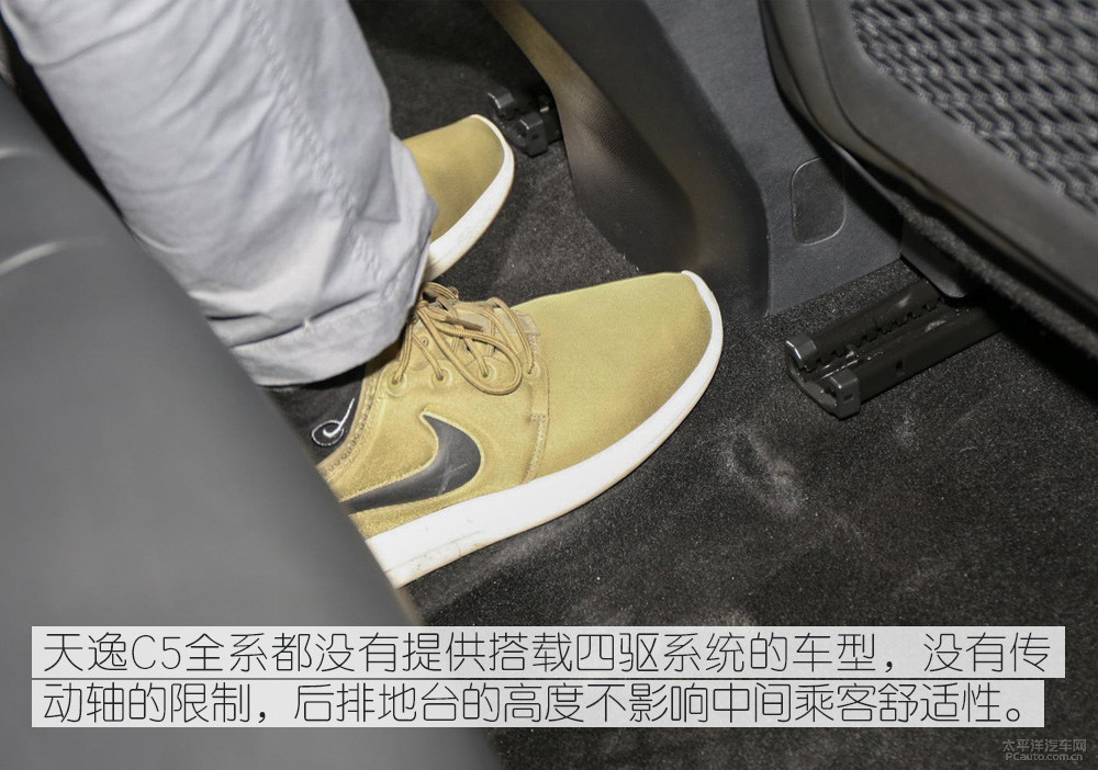 天逸C5的室内空间主要表现在紧凑型级SUV中也不处在缺点,终究2730mm的轮距還是有一定的优点。除此之外扭力梁非独立悬架的应用也有益于后排座室内空间的主要表现,从具体感受看来,头顶部和脚部室内空间充足充足,尤其是头顶部室内空间,同级別中优点显著。储备厢添加了榻榻米地台高宽比调整这一恰当的设计方案,确保了坐椅放平后榻榻米地台有较高的平面度,应用性沒有打折。