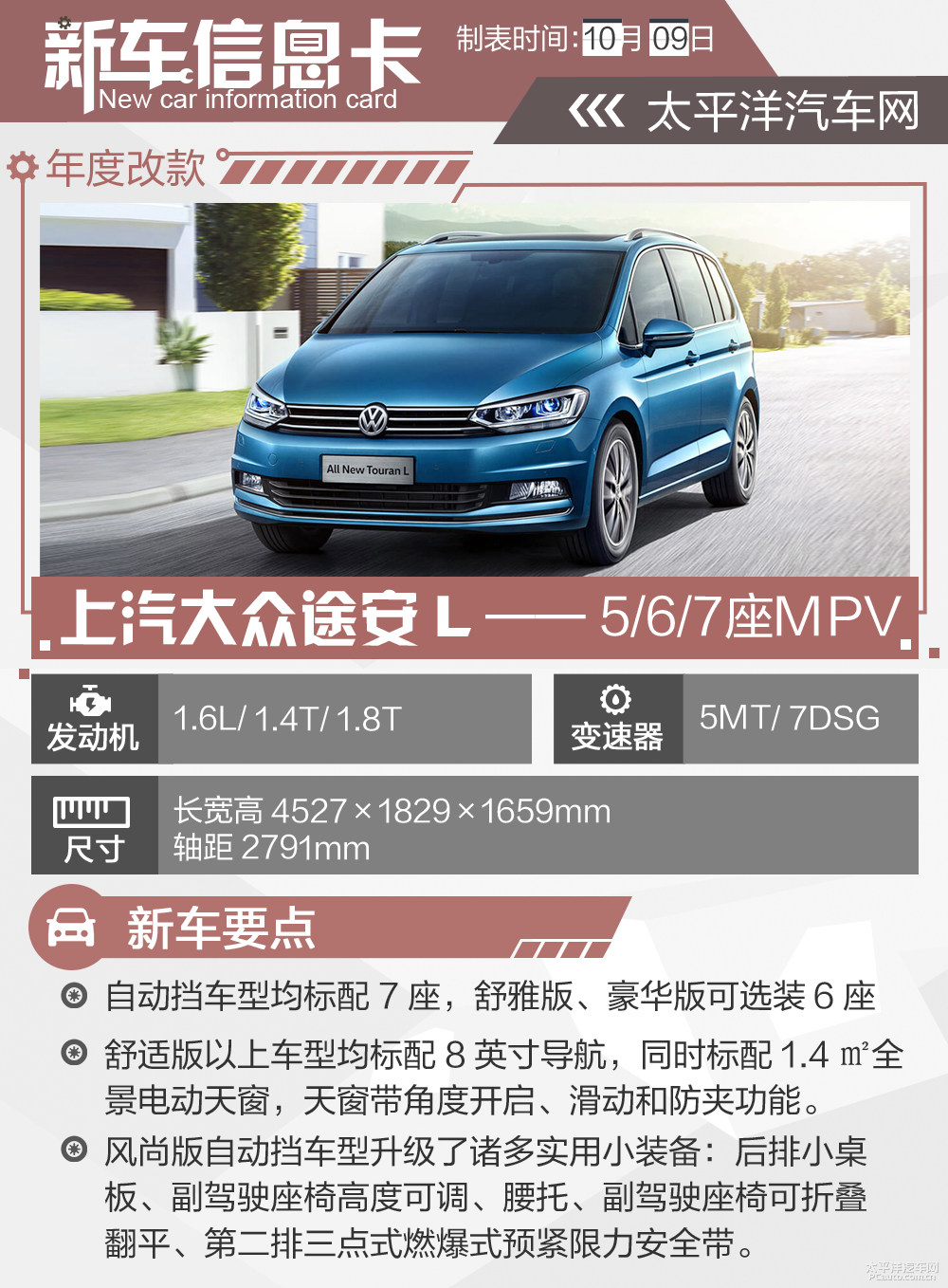 【尊流汽车网 导购员频道栏目】大众途安L做为我国家庭装MPV销售市场第一款加长车型,由于“二胎政策”吸引住了大伙儿充足多的目光,而途安L前不久也迈入了本年度换代,新汽车增加1.6L车型,共发布三种排气量7款车系可选,市场价区段14.58-23.08万余元。