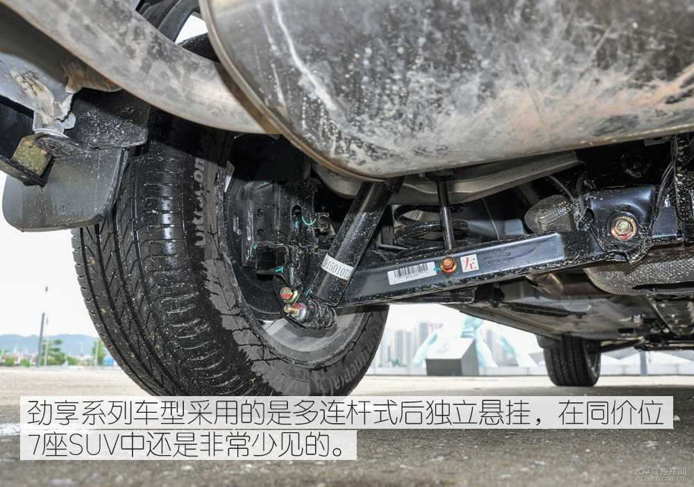 与东风风行SX6不一样,景逸X6主推的是1.5T涡轮增压器柴油发动机,尽管保存了2.0L自吸柴油发动机,但仅仅出示了一款手动挡轿车。1.5T CVT的驱动力组成一方面兼具舒适度,另一方面确保了景逸X6在载满时可以有着充足的驱动力。1.5T柴油发动机是现阶段紧凑型级SUV较为常见的,考虑驱动力要求的另外,耗油量主要表现也通常会好于更大马力的自吸柴油发动机。值得一提的是劲享系列产品车系选用的是多连杆式后独立悬架,而愉快享受系列产品配用的是拖动臂式非独立悬架。独立悬架在同档次的七座SUV中十分罕见,这也是劲享系列产品车系的一大闪光点。