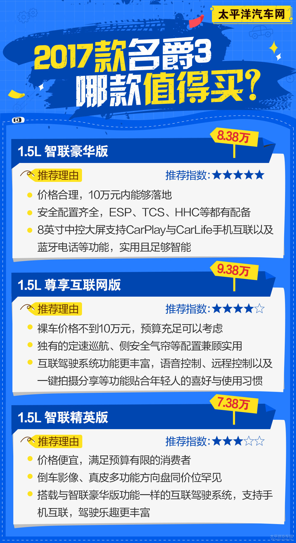 全新升级名爵3车系概述表 | ||||