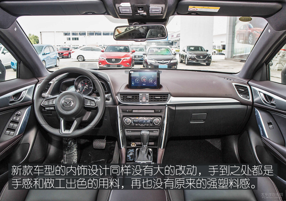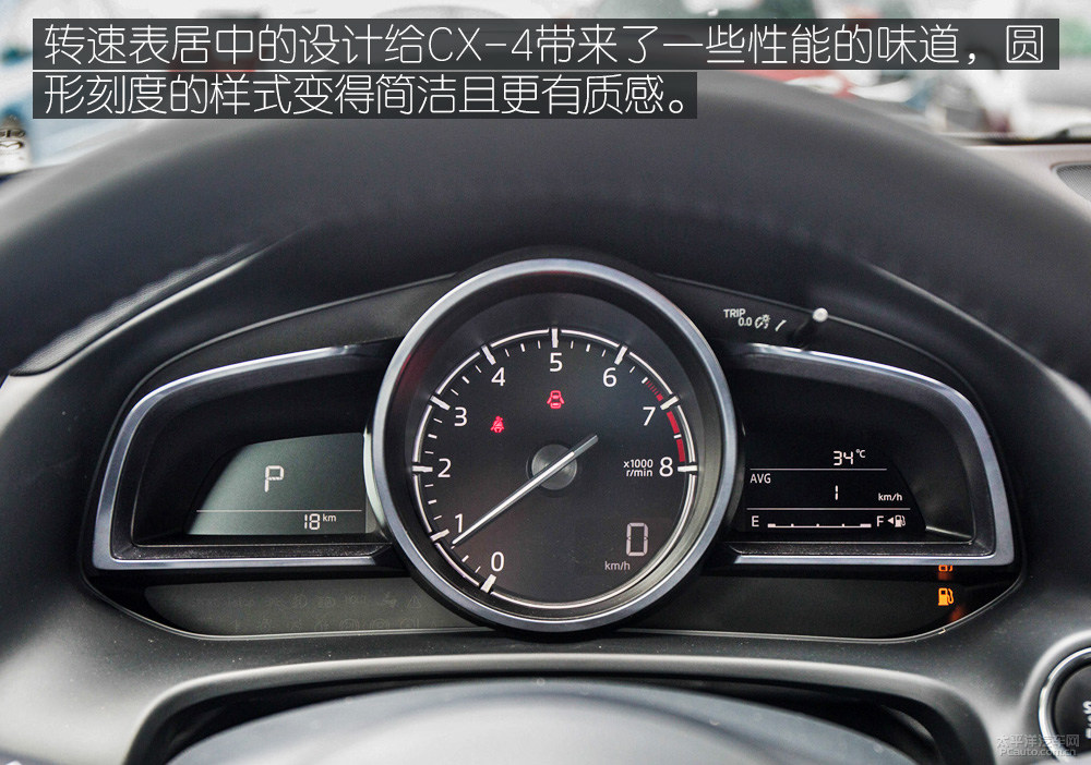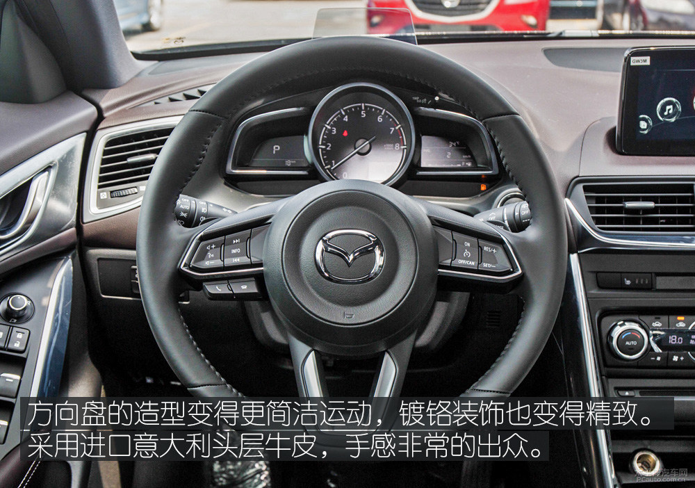 车内饰的造型设计都没有大的转变,先前应用在最新款昂克赛拉的身上的新汽车方向盘一样被应用在了最新款CX-4上,造型设计更简约干脆利落,休闲风更强。除此之外车内仪表盘的一圈鲜红色装饰设计被撤销,一样以简约干脆利落的设计风格展现,看上去更时还是层次感更强。