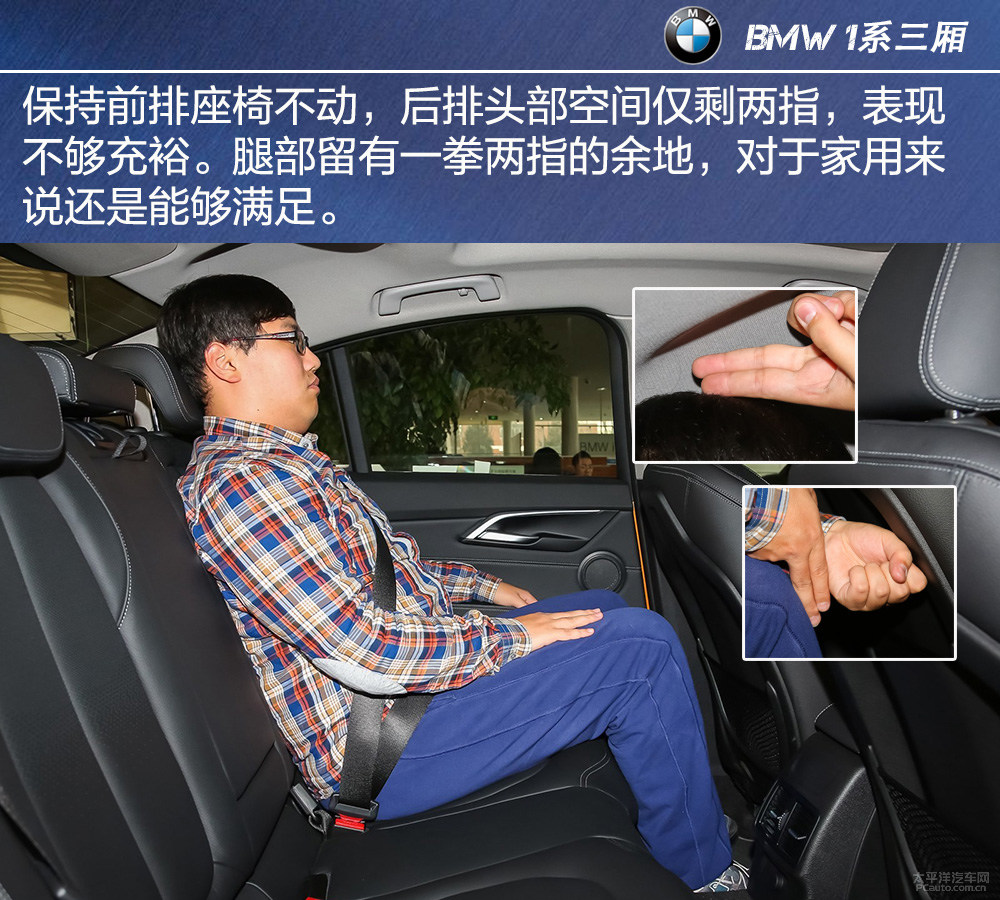车体规格层面,宝马1系三厢车型的三围是4456毫米×1802mm×1446毫米,而顶配车系的高宽比为1448毫米,全系列的轮距长短均是2670Mm。与竞争对手车系奥迪A3的三厢车型对比,除开长短不如敌人外,其他规格均好于敌人。室内空间主要表现上,宝马1系三厢的后排座脚部室内空间主要表现的非常好,可是头顶部室内空间并不富有。后排座中间榻榻米地台的突起依然沒有防止,并且交给正中间旅客的乘座室内空间并不富裕,舒适感一般。