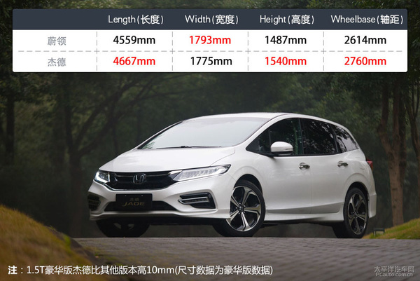 最新款杰德(17款)在动力装置层面拥有显著的转变。顶配车系配用与本田思域相同的地球梦系列产品1.5T涡轮增压器直喷发动机,但是校准并沒有那麼激进派,与之配置的是CVT变速器;而标配车系依然选用1.8L自吸发动机,只不过是统一配置5AT变速器,换句话说老款杰德(16款)顶配车系的1.8L CVT的驱动力组成将荡然无存。17款杰德和16款杰德在车系的取名上也各有不同,配备从低到高先后是經典版、舒适版 5/6座、时尚版和豪华型 5/6座共6款车系,市场价区段为12.99-17.99万余元。