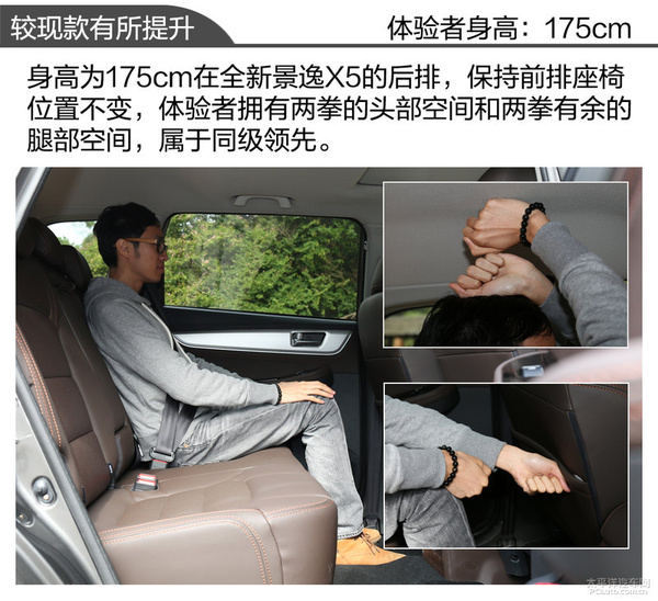 全新升级景逸X5室内空间依然维持较高的水平,可以说你可以想起的置物室内空间它都保证了。2720的轮距为全新升级景逸X5产生平级出色的乘座室内空间,人机对战舒适感亦全方位跨越竞争对手,可以说东风风行2.0时代是以客户考虑,向着爆品的总体目标为客户打造出精典车系。