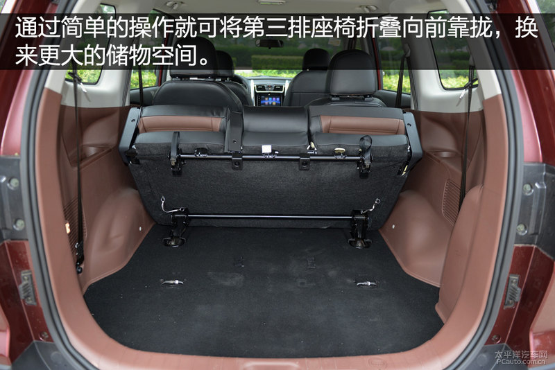 因为流行SX6选用了2-2-3坐椅合理布局,第二排坐椅可前后左右拖动,促使第三排的脚部室内空间更灵便,大大的提高了第三排坐椅的应用性。后排座坐椅适用伸缩和翻转,可置放大物件行李箱。变化多端的车里室内空间和充裕的后排座室内空间是流行SX6的一大闪光点。