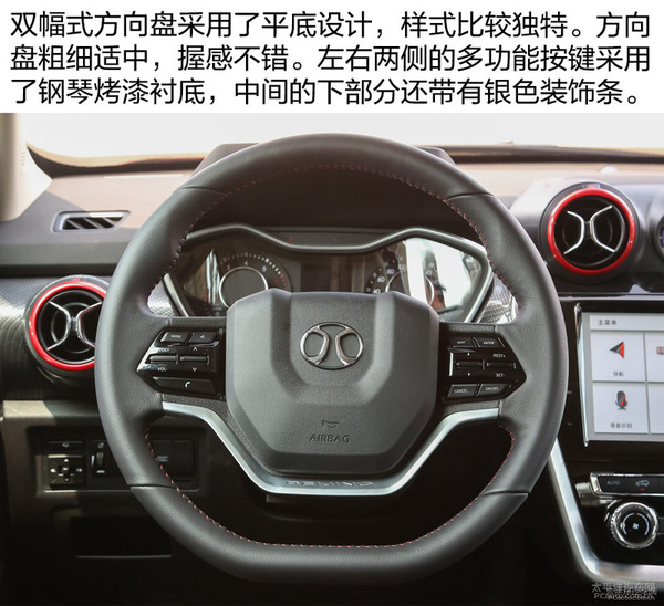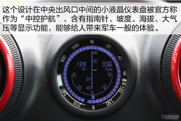 进到BJ20的车里,给人最形象化的体会便是十分的醒目,鲜红色的装饰设计圈各自被安装在了前座的四个通风口上,与外型的色彩搭配十分融洽,且在设计方案上并沒有以便构建奢华感而设计方案一些无关紧要的没用功能分析,针对一款主推“硬朗”的小宝贝,那样的设计风格确实更为接近它想突显的关键。