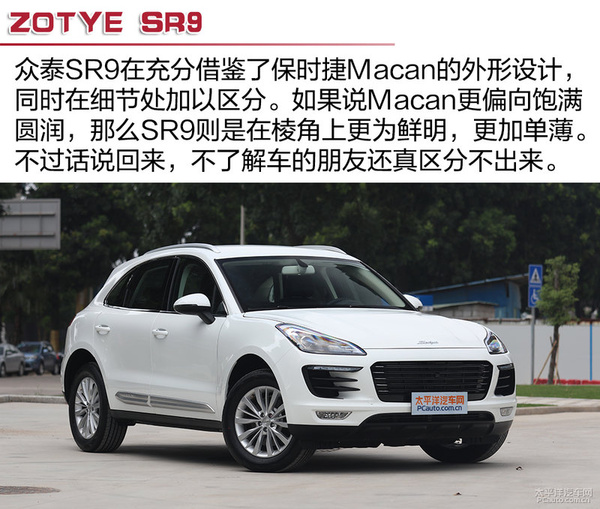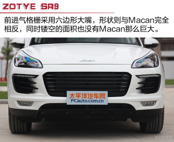 众泰SR9在造型设计上肯定保证了8分之上的长得像,前脸和外观设计都是有玛莎拉蒂Macan的风韵,一些关键点因为钣金工艺上非常复杂难以达到,因此 许多 地区還是干了一些适应能力改动,但最后出去的实际效果可以说還是很够“忽悠人”了。
