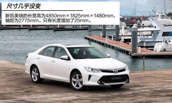 轮距层面并没什么转变,在规格层面唯一转变的便是长短了,但是这也是由于保险杆的转变造成的,并并不是延长了车体这类的。新凯美瑞的尺寸为4850毫米×1825毫米×1480Mm,轮距为2775毫米。