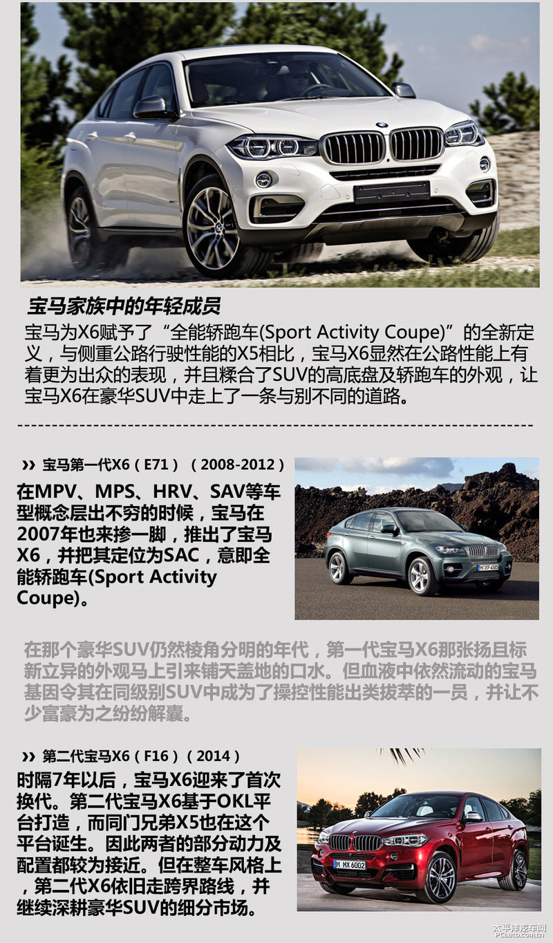 【尊流汽车网 导购员频道栏目】被界定为SAV(Sport Activity Coupe)的宝马X6既有着SUV霸气侧漏的外观设计、宽阔舒服的室内空间,又能维持宝马五系一贯优异的道路安全驾驶特性,可以说鱼和熊掌兼具。不同寻常的精准定位,让其自问世至今,仍无敌人能够与之匹敌。而在前几日的广州国际车展上,宝马五系也是发布了全新升级X6。
