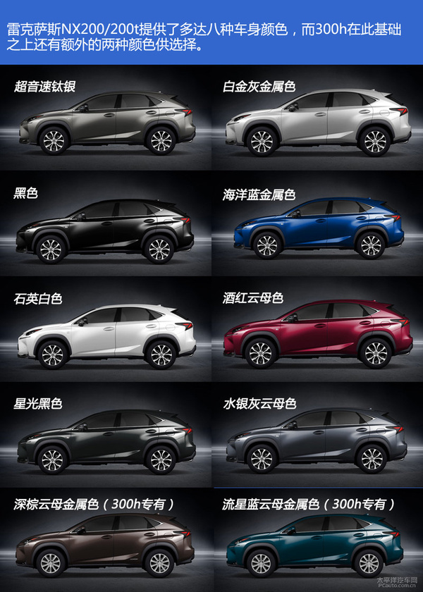 全新升级的NX于前几日的广州国际车展在中国正式上市,其官方网市场价区段为31.8-59.9万余元。新汽车共发布三款驱动力、七款车系,动力装置包含了2.0L自吸(NX200)、2.0T涡轮增压器(NX200t)及其2.5L油电混动(NX300h)三种驱动力方式,另外依据配备不一样,出示前轮驱动、适时四驱(非油电混合)、全时四驱(油电混合)三种驱动器方式。
