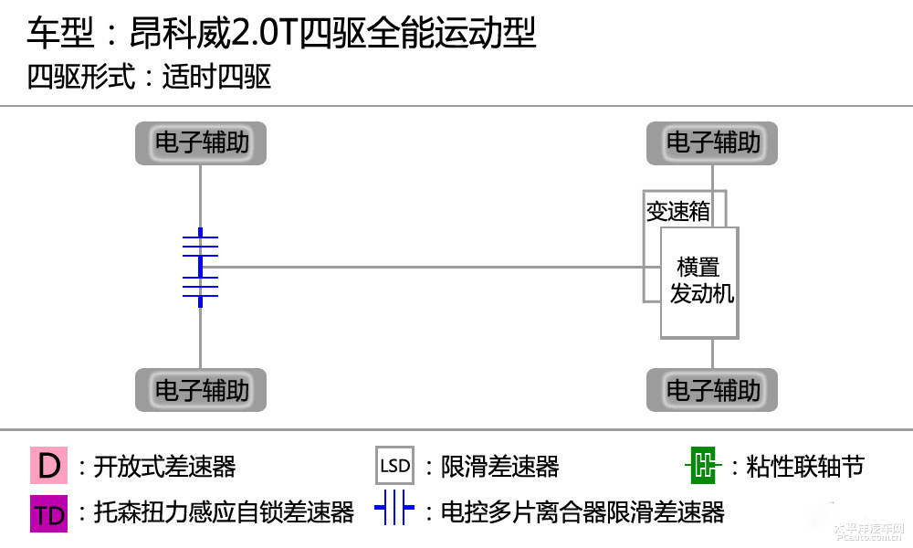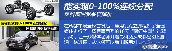 特别注意的是,昂科威全系列均标准配置四驱系统,在其中2款旗舰型的四驱系统被通用性称之为智能化全实时路况四驱系统,由汽车后桥2个液压操纵的多片离合器构成,电脑控制前轮驱动力的分派,在其中前后左右轴扭距比例最大为50:50,后轮的上下车轱辘中间扭距比例为100:0-0:100(点这儿看越野车感受1、越野车感受2)。标配车的四驱系统为一般四驱方式,安装的是很普遍带中间差速器锁止的四驱系统,且四轮有电子器件輔助。