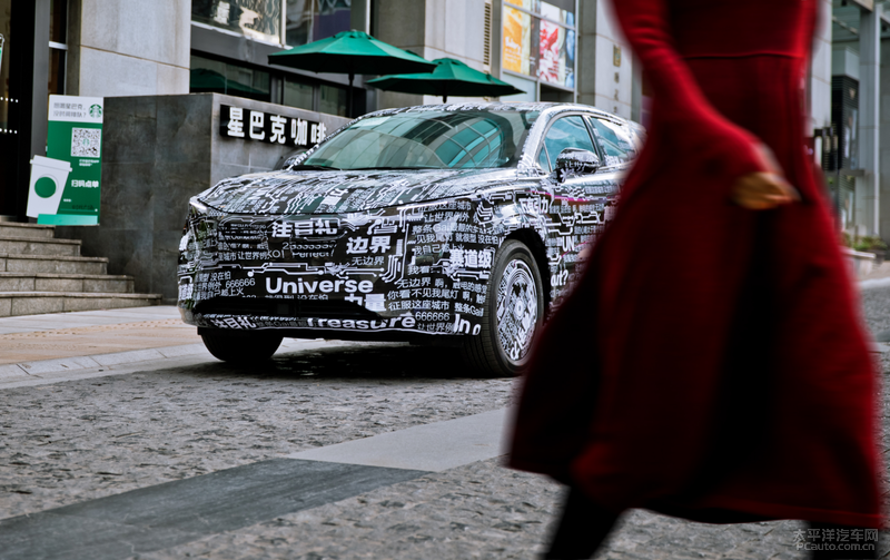 碟照中,北京长安S202身穿一身非传统的掩藏,全车由灰黑色背景色并带著"视频弹幕式字体样式"的纸贴遮盖。通过纸贴,隐隐约约能够见到在其中网选用类似“X”形的产品造型设计,车大灯某组分离式设计方案,上端前灯比较平扁纤长。前包围着设计方案了梯状的进气口。能够推论,S202的进气格栅外貌是新潮健身运动,颇具攻击性的。