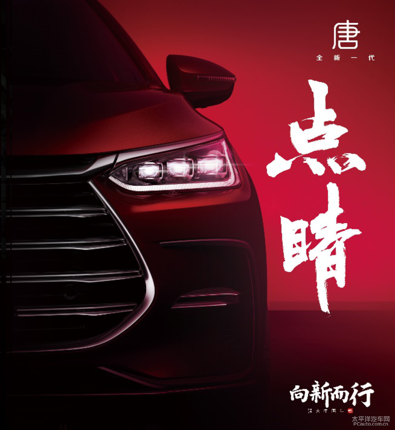 依据先前公布的外型預告图,新款比亚迪唐延用了设计大师艾格所作的Dragon Face家族式设计语言。结合了东西方设计色彩,根据矩阵龙睛车灯、熏黑了的C柱和双身材曲线、双五辐轮圈等设计风格展示出“龙颜”的霸气侧漏。