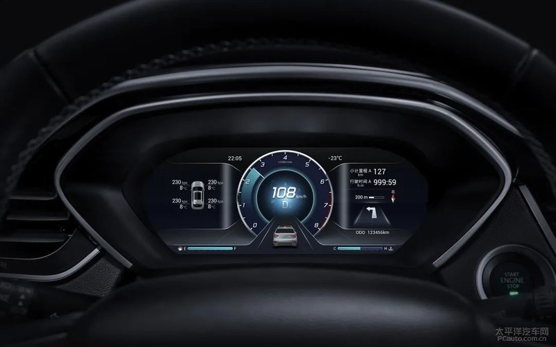 DX7星跃配用高清10英寸TFT液晶显示屏组合型仪表盘,屏幕分辨率达到1920*760,能随不一样性能模式更改主题风格色彩,正中间的虚似转数表进一步加强健身运动气场。多功能仪表盘出示丰富多彩的驾驶信息内容,数显式胎压监测装置带车胎溫度显示信息,还配置了ADAS无人驾驶輔助系统软件。