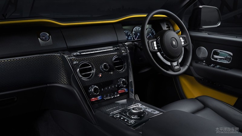 车内饰设计方案,劳斯来斯库里南Black Badge配置了独特复合材料材料的中控台控制面板,据了解,每片控制面板须喷漆6层车漆,而且历经72钟头晾晒并历经镜面玻璃化的打磨抛光,最后才可以展示出非常的反射面光泽度,这般完美的工艺处理才可以突显出完美奢华感。